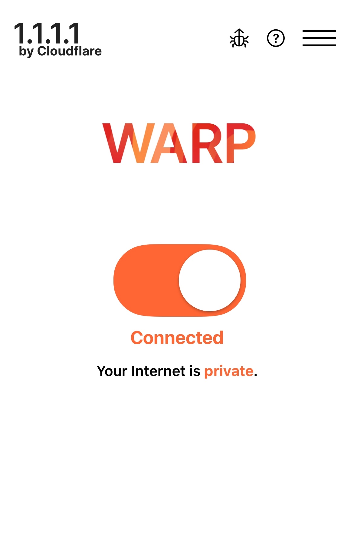 3. เปิดใช้งานโดยเลือก 1.1.1.1 และเปิด Connected เป็นอันเสร็จ